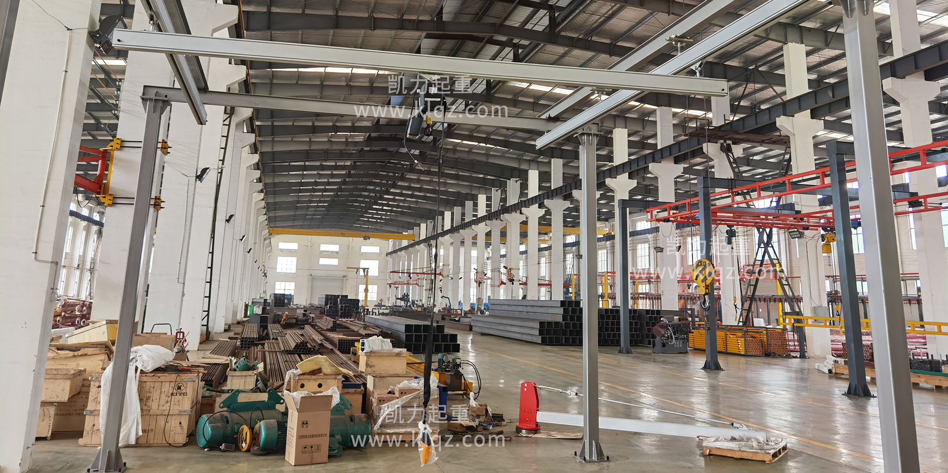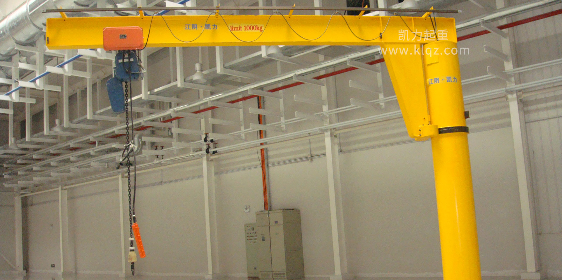 江陰市凱力起重電機有限公司專業生產JPKK型系列環鏈電動葫蘆;鋼絲繩電動葫蘆;(立柱式、定柱式、移動式、墻壁式、壁行式、曲臂式、雙臂式)旋臂起重機(懸臂起重機、懸臂吊、旋臂吊);JKBK柔性輕型組合式懸掛起重機(單軌、單梁、雙梁、伸縮梁、堆垛機等)的起重設備專業制造公司,產品廣泛應用于機械制造、冶金、電力、鐵路、水利、港口等多個行業。為滿足客戶需求,可設計生產制造各種任意參數的非標準起重設備。